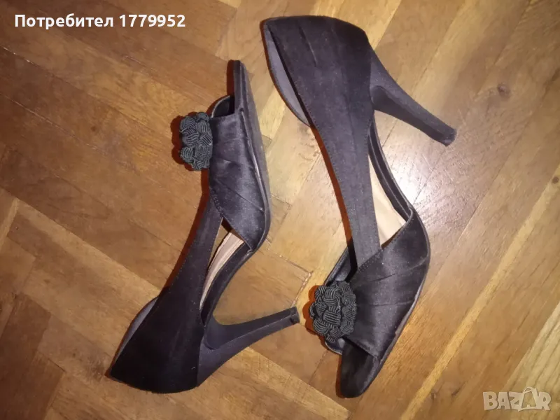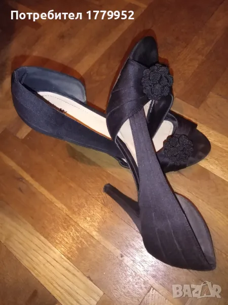 Елегантни черни обувки на ток от сатен на ROBERTO ZAGO. 39 номер. Идеален модел за специален повод. Размер на тока 9 см.