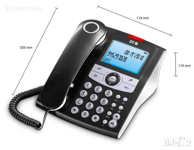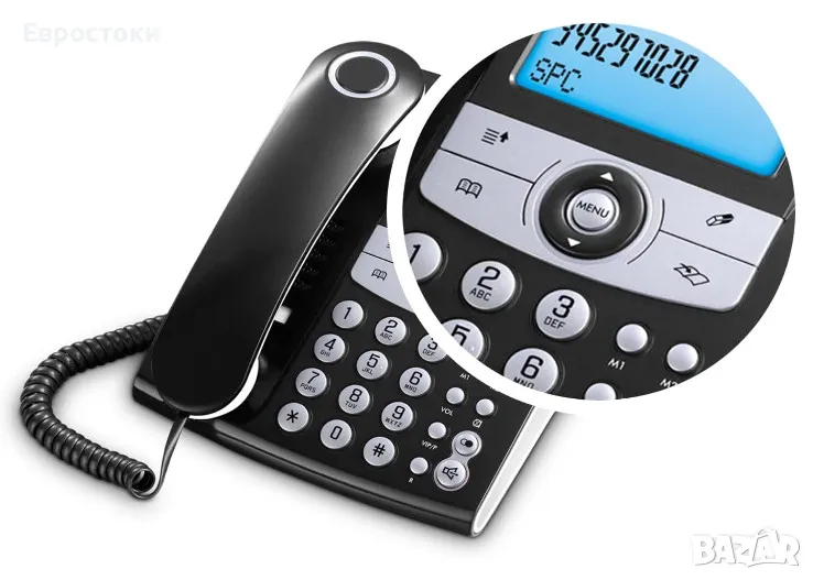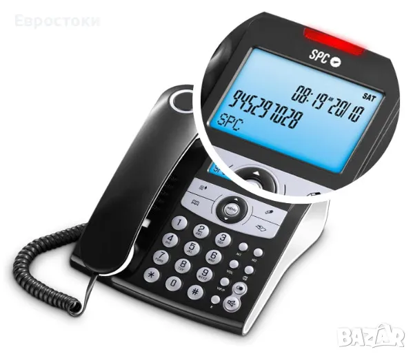 Стационарен телефон SPC Elegance ID, настолен домашен телефон с осветен екран, 2 директни памети, телефонен указател, светещ сигнал за пропуснати.