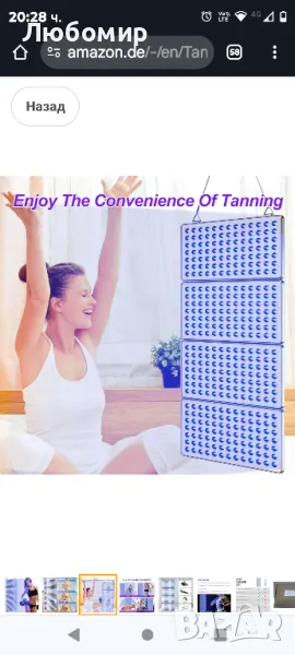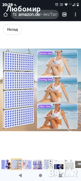 солариум за домашна употреба Слънчева лампа за цялото тяло 364 клинични светодиода, устройство за солариум с висока мощност и комплект за закачане.Поради различния цвят на кожата и приемането на кожата се препоръчва използването на лампата 1-2 пъти на ден за повече от 3 месеца за видими резултати. Подходящ за тен на лице и тяло.Подобрява съня, настроението, концентрацията и енергията. Ефективна, безопасна и естествена слънчева лампа. Лампа за солариум 364 LED, дължина на вълната 370nm-375nm.
