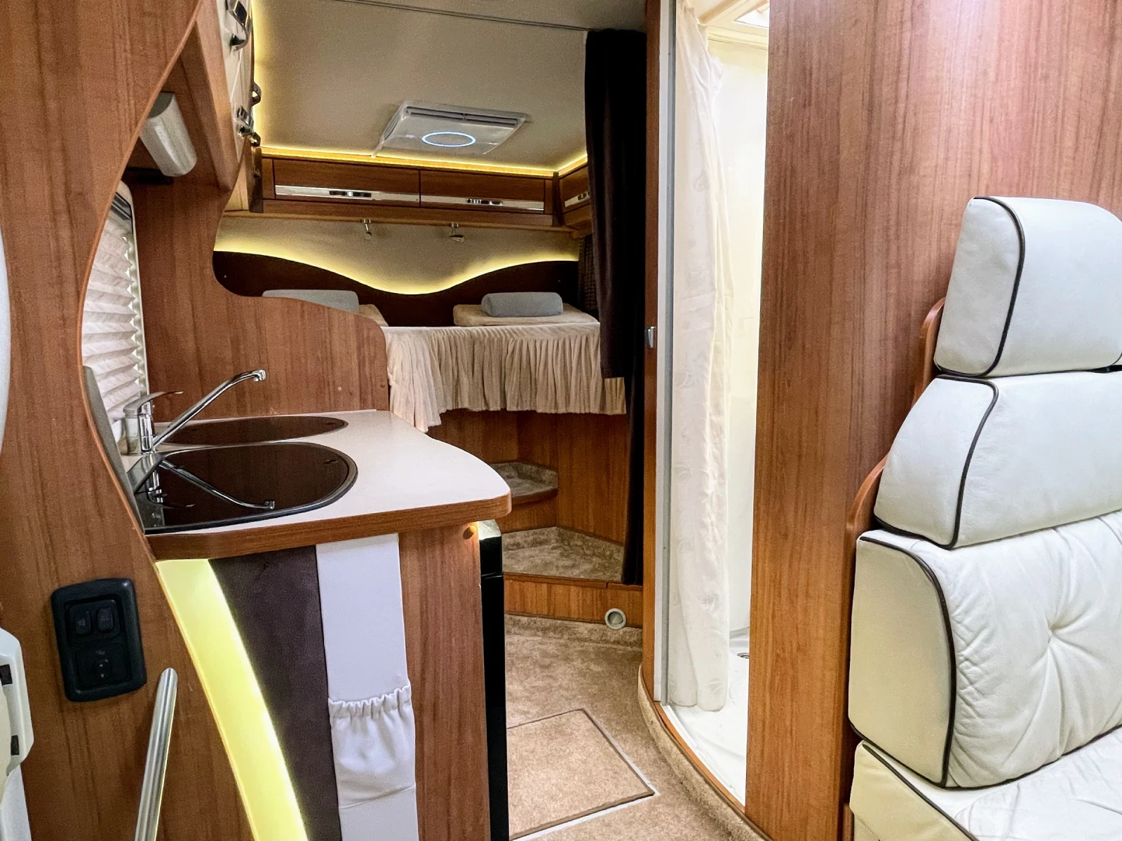 " ЗАРА КАМП" ЕООД Ви представя прекрасния, напълно интегриран " Eura Mobil Integra Style IS 650 EB модел 2014г. Кемпера е в абсолютно перфектно състояние, без течове, удари или лоши миризми. Всички уреди са тествани и работят безупречно ! Този дом на колела е 4 до 5 местен, оборудвана с Г-образно холово, кожено сепаре в предната част, с въртящи се предни седалки към седящата се група за по голямо удобство. Падащо легло над шофьорското и пасажерско място с размери 195см х 160см. В средната част са разположени кухненския бокс, баня и тоалетна. В задната част са разположени две големи, наистина удобни с подматрачна рамка, съединени единични легла + голям гараж под тях за вашите нужни потребности. Кемпера е оборудвана с: - ГАРАЖ под спалното помещение - КОЖЕН САЛОН от естествена кожа - КЛИМАТИК - чисто нов " GREE" 12-ка - КЛИМАТИК - кабина - Тягов акумулатор 100Ah - чисто нов - Соларен панел 180w - 10 amp - Газова бутилка - Захранващ кабел 220v - Truma Kombi - Газово отопление / Бойлер - Автоматичен " Dometic" хладилник на 220v / 12v / ГАЗ - 3 газови котлона - Резервоар 140л - чиста вода - Резервоар 120л - мръсна вода - Баня и тоалетна с поддушово корито - Плисирани щори и комарници на всички прозорци/люкове - Комарник на входната врата - Стойка за телевизор - Sky roof панорамен - Въртяща се седалка на водача / Въртяща се седалка на пътника - USB портове в жилищни и спални помещения - Камера за задно виждане -Контакт 220 v в гараж -Контролен панел - LED фарове - LED амбиентно осветление и много други ! Zara Camp LTD / Campers & Caravans е дилър с най-голяма наличност в България, на внимателно селектирани немски марки каравани и кемпери, нов внос от цяла Европа с над 10 години опит в бранша ! Основната ни цел е да предложим качествено обслужване и разнообразие с голямата ни гама от подвижни домове на колела ! Ние също така държим да отделим нужното време и внимание за правилната консултация според индивидуалните нужди и изисквания на всеки един наш клиент ! Преди всяка сделка, караваните се тестват и почистват основно ! ! ! ~ СЕРВИЗ ~ За по-голямо удобство и независимост ние можем да оборудваме вашата каравана със соларни панели, LED осветление, климатици и всякакъв друг вид части и аксесоари по ваше желание. -СЪДЕЙСТВИЕ~ ЛИЗИНГ - гарантирано най-добри условия Съдействие в КАТ Транспорт За повече информация се обадете на посоченият телефон или ни пишете и последвайте на: Facebook: Zara Camp LTD / Campers & Caravans Instagram: zaracampltd zaracampltd. mobile. bg Email: zaracampltd@gmail. com Позициониране: гр. Стара Загора, (с. Бъдеще), на 4 километра от магистрала " ТРАКИЯ" посока гр. Хасково Благодарим за вниманието !