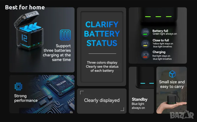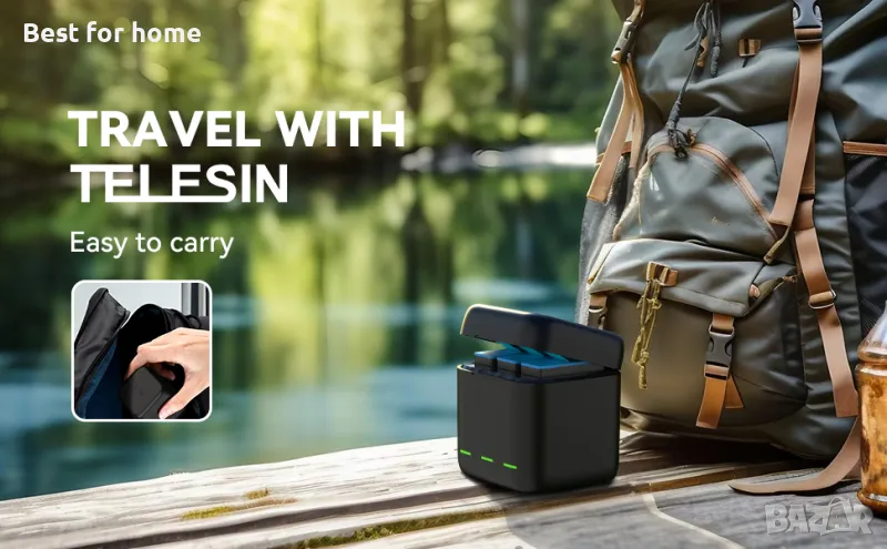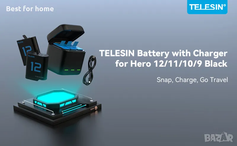 Зарядно с две батерии за GoPro Hero 12 / 11 / 10 / 9 от TELESIN GP-BNC-901-B