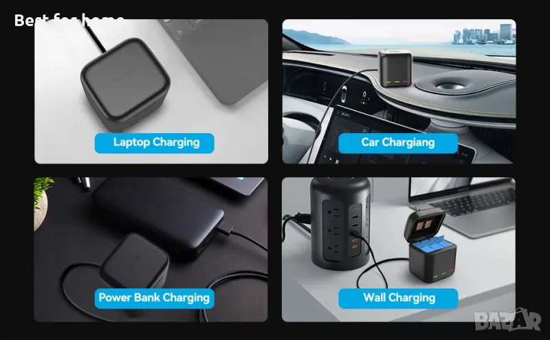 КОМПАКТЕН ДИЗАЙН: Малко, леко зарядно устройство позволява лесно пренасяне във вашата чанта, куфарче, багаж или чанта за фотоапарат.