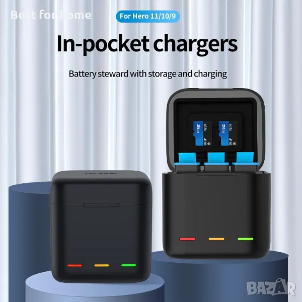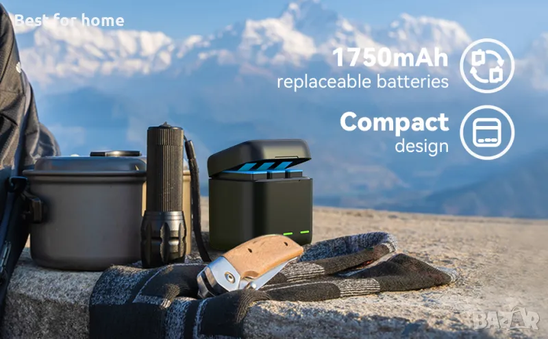 ЗАХРАНВАНЕ НА ВАШИЯ Hero 12 11 10 9: Лесно увеличете времето за работа за екшън камерата gopro и записвайте всеки момент с батерии за смяна от 1750 mAh. Общо време за зареждане на 3 батерии: 2 часа