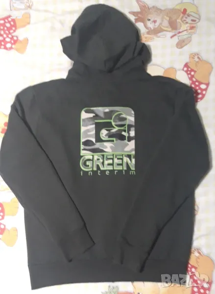 Детски,тийн суичер, ватиран, военно зелено. Размер S. Подходящ за момче на възраст 14-15г.