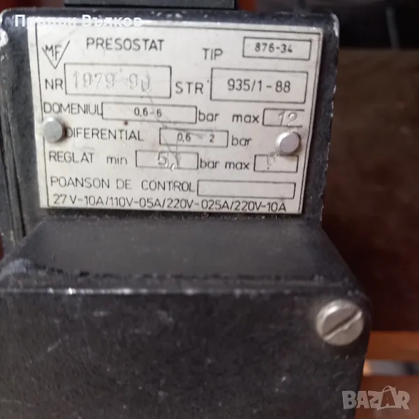 Пневматично реле (ПРЕСОСТАТ)220в -0- 5bar max 12 bar → Обява 47245552