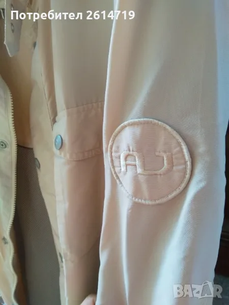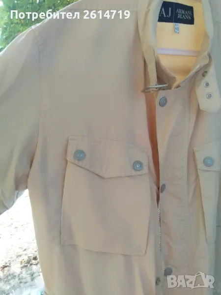 Малко носено есен- пролет яке на Armani. Тъмно бяло, тънко и леко, промазано срещу вода. За повече информация и точни измервания ми пишете. Размер L- XL.