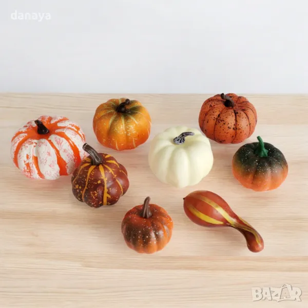 5180 Комплект изкуствени тикви за декорация, 8 броя