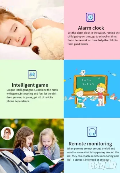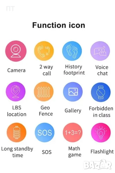 Локация на детето чрез GPS, телефон, фенерче, тъчскрийн, камера, бутон SOS