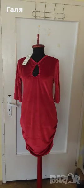 Червено кадифе елегантна рокля р-р L → Обява 47247962