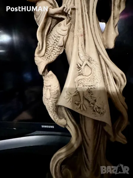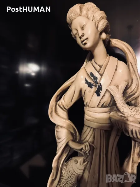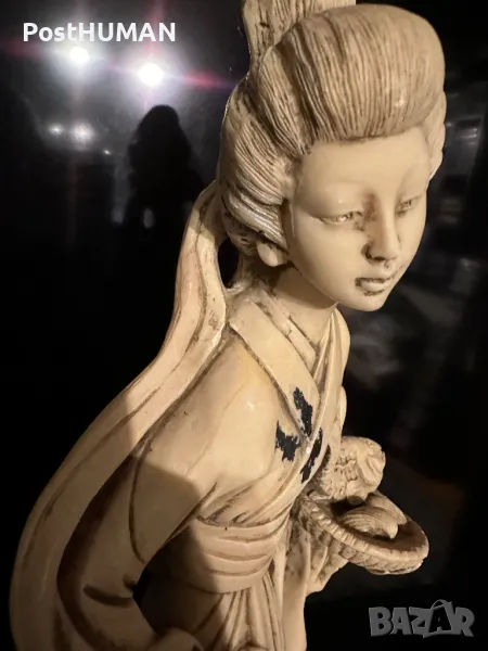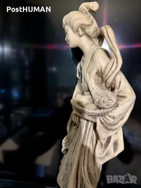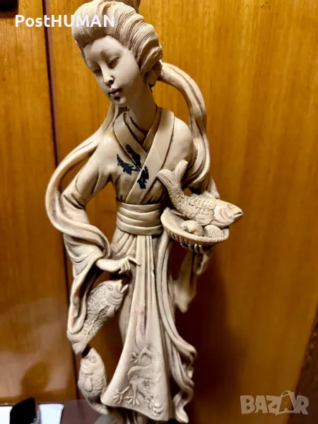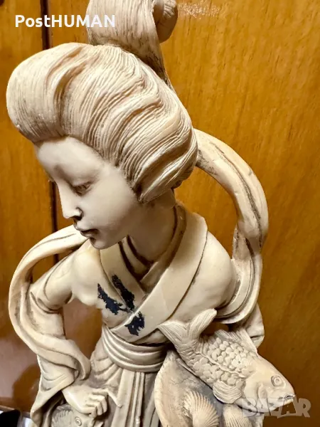 Статуетка на японска жена,продавачка на риба,изработена от естествена смола и костно брашно,много запазена,
