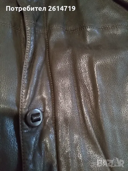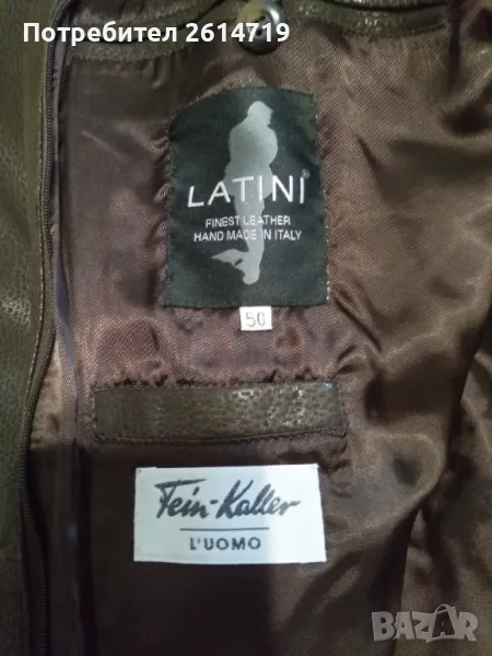 Мъжко кожено палто на италианската луксозна марка Latini. Ръчна изработка от висококачественна телешка напа, фина и мека, с визуални ефекти по кожата, на живо има елегантен електриков блясък. Има допълнителна подплата тип елек и яка от естествен косъм, която може да се сваля (без яката) и якето да се носи в по- топло време. Цветът е тъмно кафяв с лек блясък, номер 50/ L. За точни измервания и конкретни снимки, може да ми пишете.