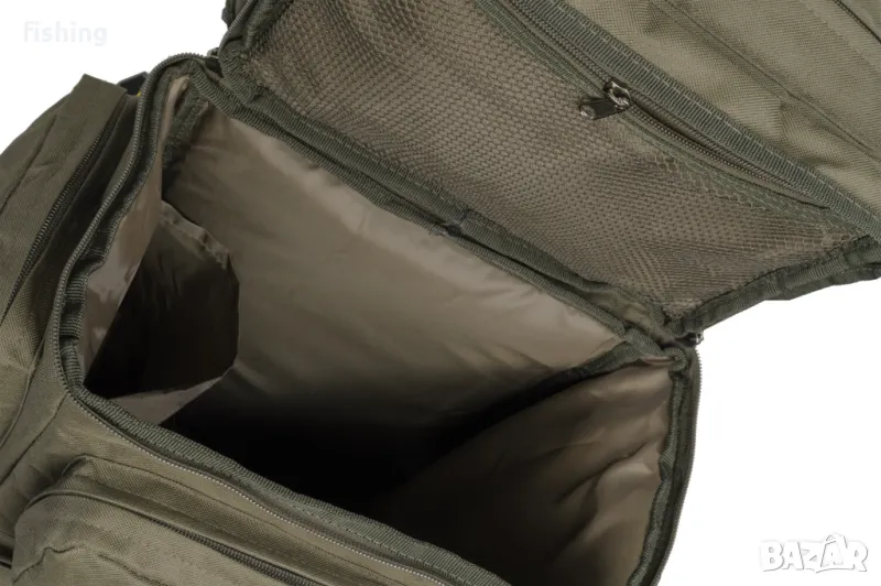 Раницата предлага висококачествени материали, компоненти и изработка на изключително достъпна цена. Снабден е с удобни, анатомично оформени подплатени презрамки, включително регулируема катарама на гърдите и здрава дръжка за носене в ръка. Материалът на раницата е напълно водоустойчив и може да се пере. Допълнително дъното е подсилено и укрепено. Основното отделение разполага с вътрешен джоб за по-добра организация на носения товар. Отстрани на раницата са поставени големи странични джобове с допълнителни халки за колове и други аксесоари. Допълнителни джобове са разположени на капака и предната част на раницата. Всички джобове са оборудвани със здрави ципове и двойни ципове с дизайн Mivardi за много лесен достъп.