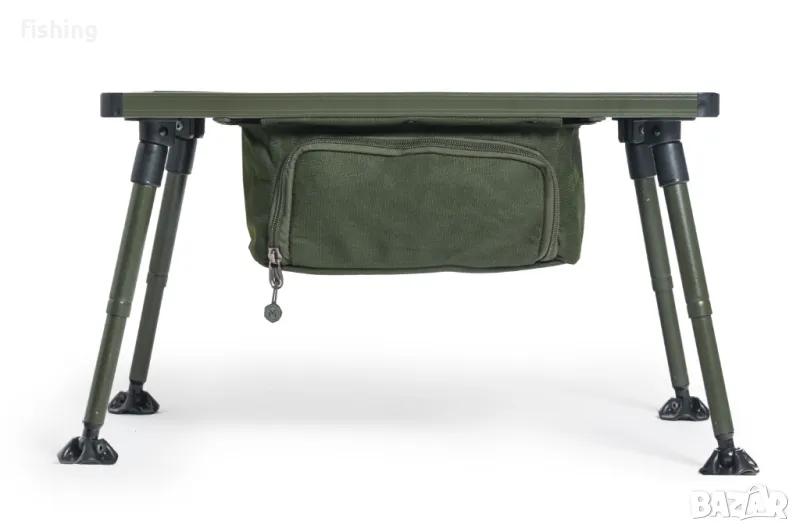 Новопроектирана по-голяма маса за бивак. Изцяло металната конструкция на основната платка осигурява твърдост и дълъг живот. Телескопичните крака са снабдени с луксозни въртящи се крачета и система за бързо освобождаване на разширение. Те също така позволяват масата да бъде поставена на допълнителна височина. Краката се сгъват и разгъват много лесно. Масата се предлага с практичен калъф с дръжки за лесно пренасяне.