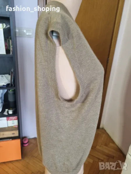 Пуловер без ръкави от най- качествената, мека и създаваща уют през студените месеци материя- кашмира. Цветът е кафяв, по-наситен от тези на снимките( за съжаление излизат по- светли).