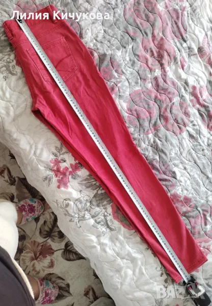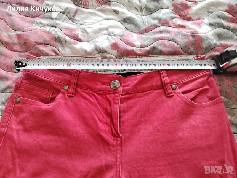 Продавам и един брой червени дънки. На тях няма размер, но съм снимала талията.
