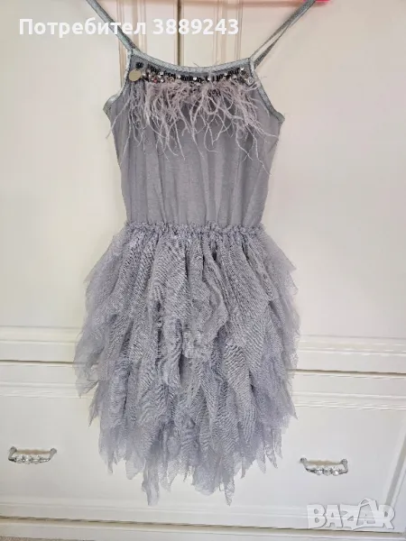 Детска рокля с пера и паети.Размер 140-150см.Запазена.