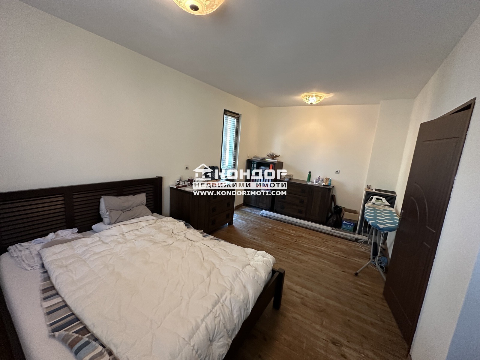 Оферта 63388: Предлагаме ви втори жилищен етаж от пет етажна сграда с реална площ от 109кв. и ПАРТЕРЕН ГАРАЖ включен в цената. Състои се от кухня с трапезария, хол, две спални, баня, тоалетна и две тераси, едната от които е остъклена и там също има изкаран кухненски бокс. Апартамента е напълно обзаведен и готов за живеене. Към имота има партерна стая от 14кв. Отоплението е посредством камина на дърва с радиатори във всяка стая и климатици. В близост има автобусни спирки, университет, големи хранителни вериги, училища и детски градини. Страхотен бъдещ дом!!!ВИЖТЕ ОЩЕ ИЗГОДНИ ОФЕРТИ НА https://www.kondorimoti.com/ С ЕЖЕДНЕВНА АКТУАЛИЗАЦИЯ!