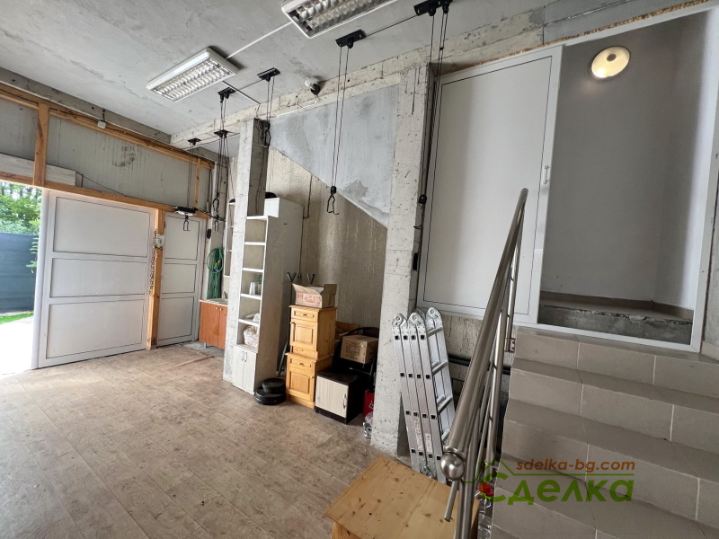 Двора е равен и много добре поддържан, и е с площ 175 кв.м. На първо ниво на сградата се разполагат голямо складово помещение, което може да се обособи според нуждите ви, магазин и голяма гараж с канал, които са свързани по между си.