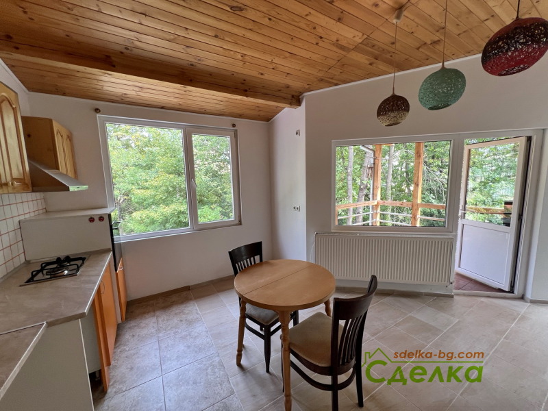 Втория етаж се състои от просторна дневна с трапезария, кухня с тераса, спалня, баня с тоалетна.