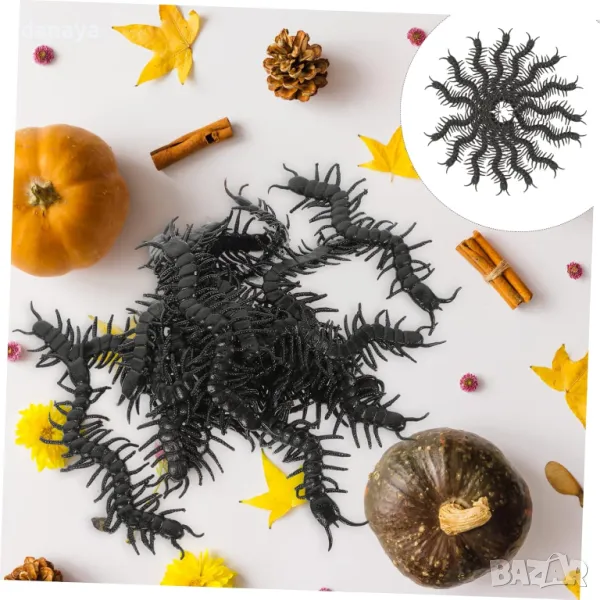 Halloween декорация с този ужасяващ комплект от 12 черни стоножки! Изработени от гъвкава гума, тези реалистични стоножки са идеални за украса на партита, за страховити изненади или за тематични фотосесии. Подходящи за вътрешни и външни пространства, те лесно се комбинират с други декорации за създаване на ужасяваща атмосфера.