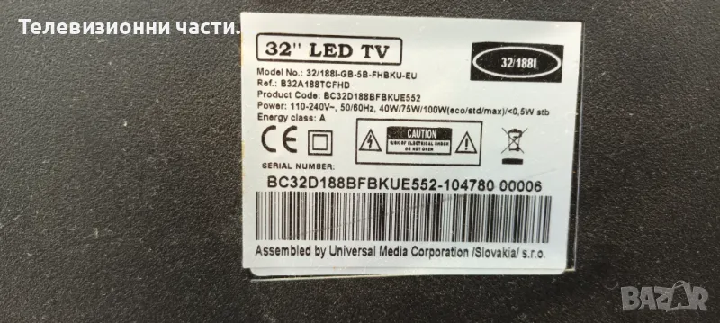 Blaupunkt 32/188I-GB-5B-FHBKU-EU / BC32D188BFBKUE552 с дефектен Main Board и захранване.Панел LTA320HN02.Матрица FHD320SL4LV0.1