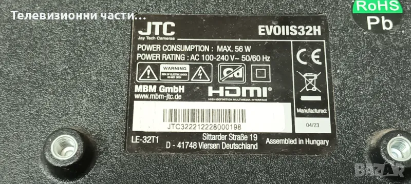JTC EVOIIS32H със счупен екран CX320DLEDM CV320H2-F01-XC-8/EL.MT9602V-FG48/MSG-T320-T-3030-31A-06 30 → Обява 47257669
