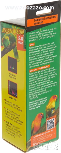 SunTM 5.0 UVB Compact Fluorescent осигурява на птиците безопасни нива