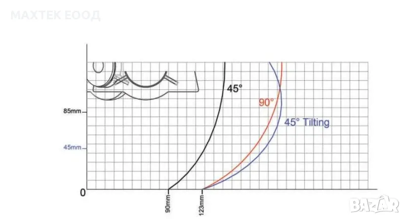 • Бърза смяна между 0 °, 15 °, 22,5 °, 30 °, 45 ° в двете посоки