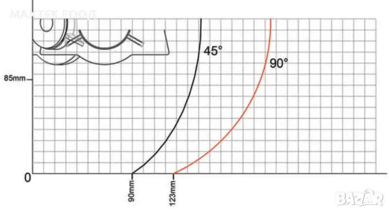 • Обхват на рязане -45° - +45°
