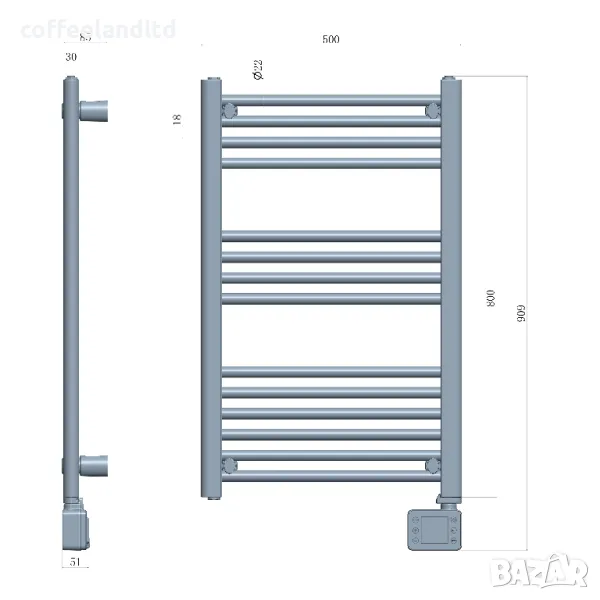 пръчки: 13 нагревателни + 1 долна, винаги студена - служи за закачалка