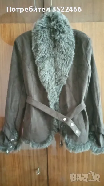 Дамско кожухче тип велур, с коланче с капси. Размер ХЛ, но е умалено. Ново, не е носено.