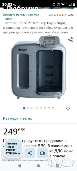 Tommee Tippee Perfect Prep Day & Night, Машина за приготвяне на адаптирано мляко