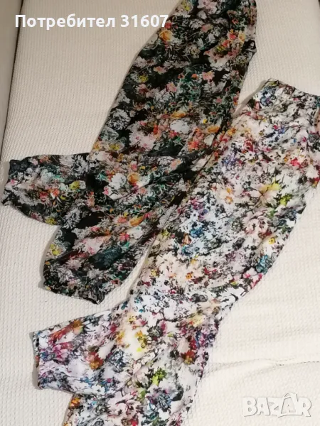Сатенен панталон в светли флорални мотиви. Лек и удобен. Размер S/XS.