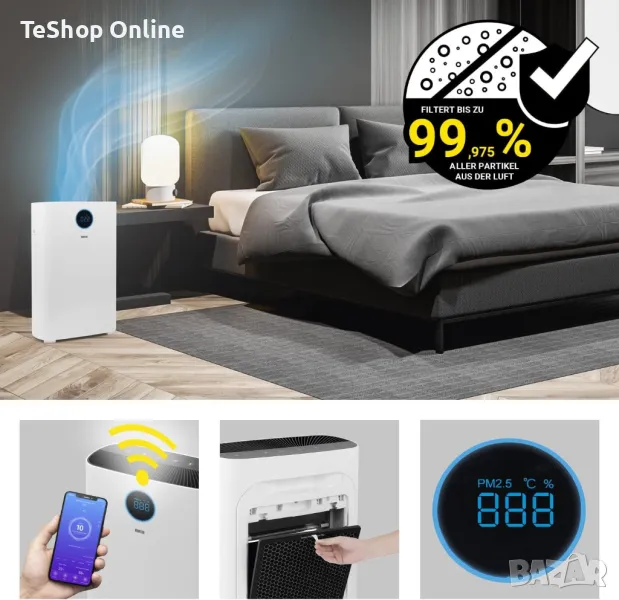 С Wi-Fi функция: с практично приложение за управление - следете качеството на въздуха, влажността и температурата, така че винаги да имате предвид климата в стаята