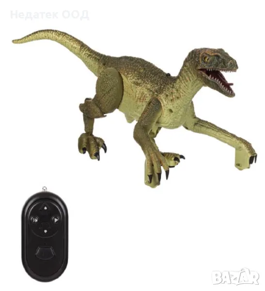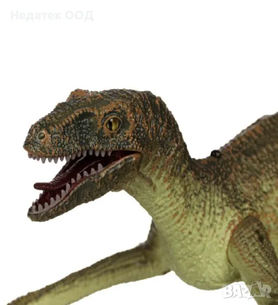 Велоцираптор динозавър със светлина, движение напред и назад, 6 различни звука на динозавър (тиранозавър, птерозавър, трицератопс, индоминус рекс, акантозавър, велоцираптор) и инфрачервено дистанционно управление. Контролерът работи с 2 батерии AAA (не са включени), а динозавърът работи с 4 батерии AAA (не са включени).