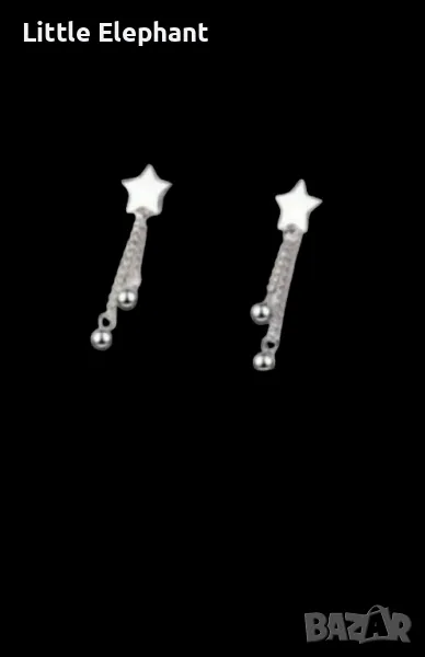 Сребърни висящи обеци,колекция"Stars-stars and balls"/нови → Обява 47264448