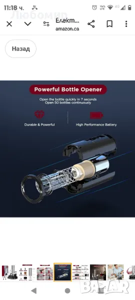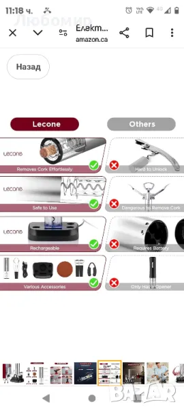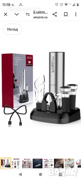 Електрическа отварачка за вино Lecone, автоматична безжична акумулаторна отварачка от неръждаема