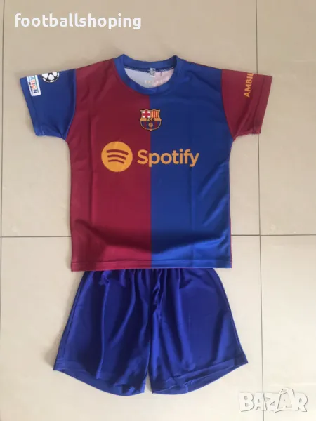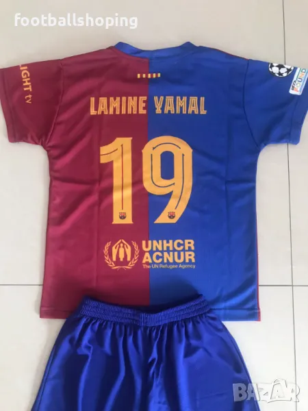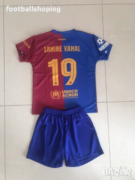Страхотен детски футболен екип на Барселона 2024/2025 с Ламин Ямал 19. 100% българско производство. Материя: Полиестер лукс. Налични всякакви размери за деца от 4 год до 13год. Разполагаме и с дълги детски екипи на Барселона. Имаме наличен и ретро къс екип на Барселона с Меси. Моля разгледайте и другите обяви в профила ни :)