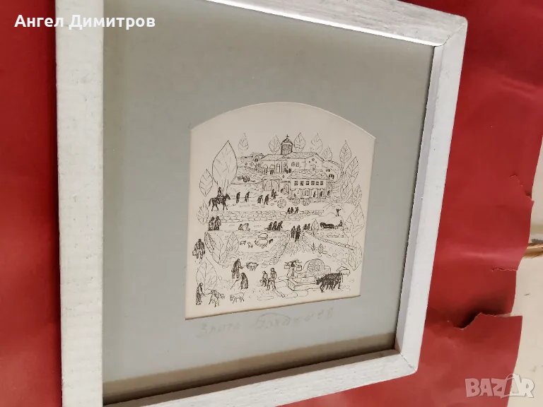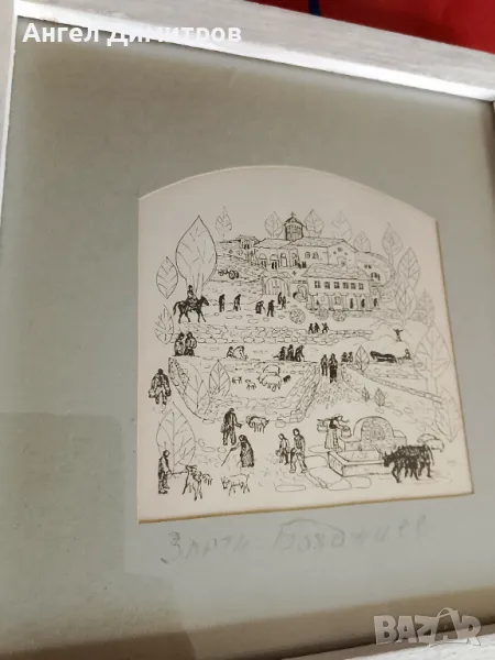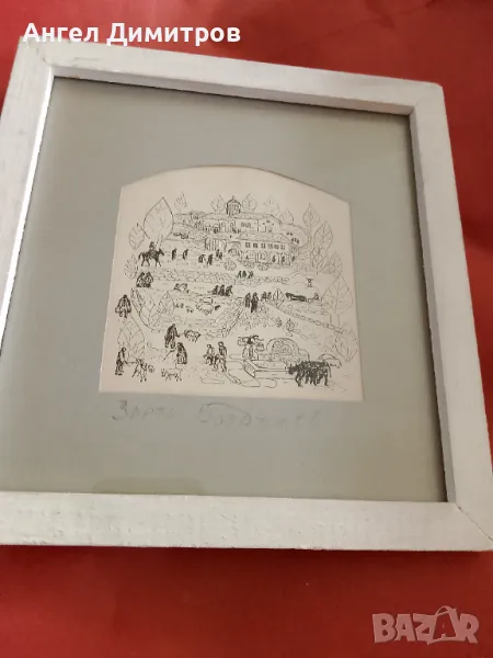 Златю Бояджиев прекрасна работа , 21-20 см с дървената рамка и стъкло , 10,5-10 см рисунката , чекхол