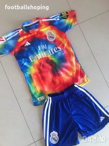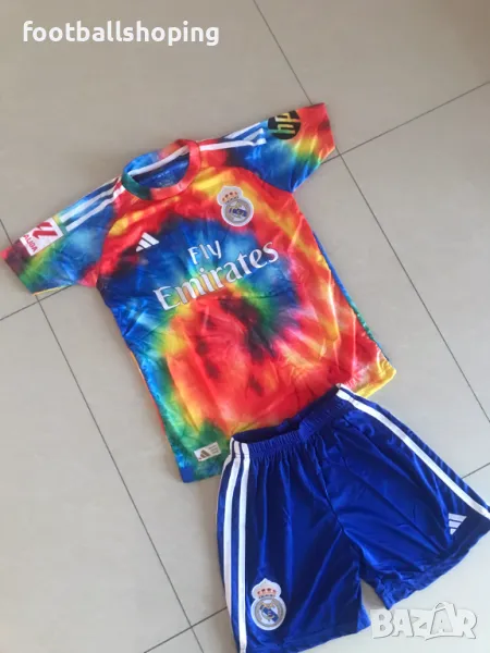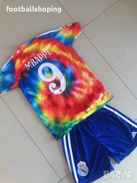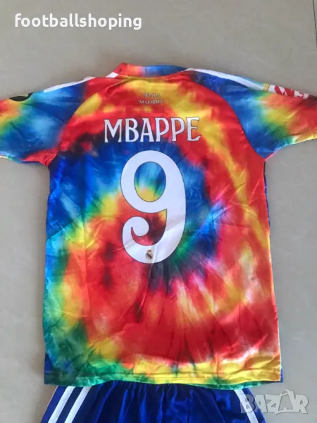 Страхотен детски екип Реал Мадрид - Мбапе 9.Материя : Полиестер лукс !!! Размери от 104 до 176.Сезон 2024/2025 - 2 цвята.Разполагаме с много други артикули на Реал Мадрид.Моля разгледайте и другите обяви в профила ни.Изпращаме до офис на Еконт с преглед и тест.100% сигурност на доставка и гарантирано качество на изработка :)