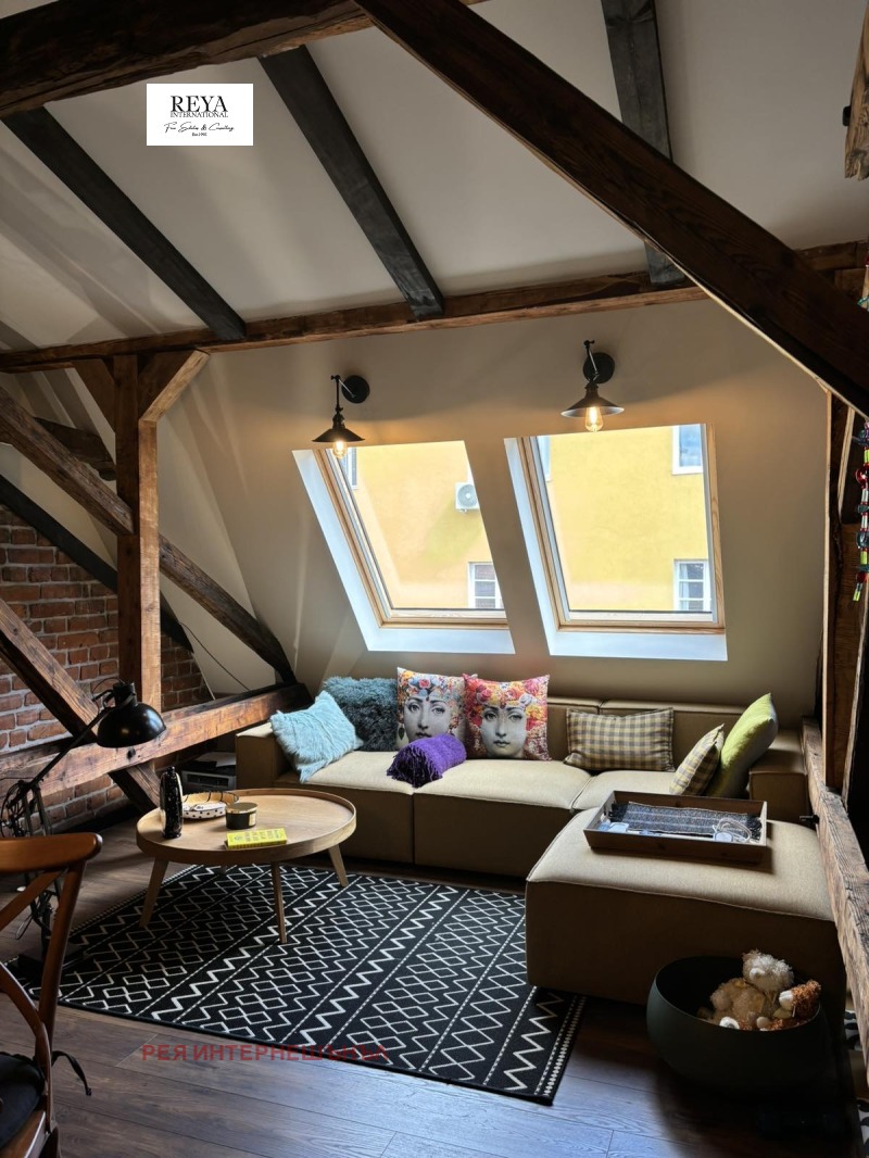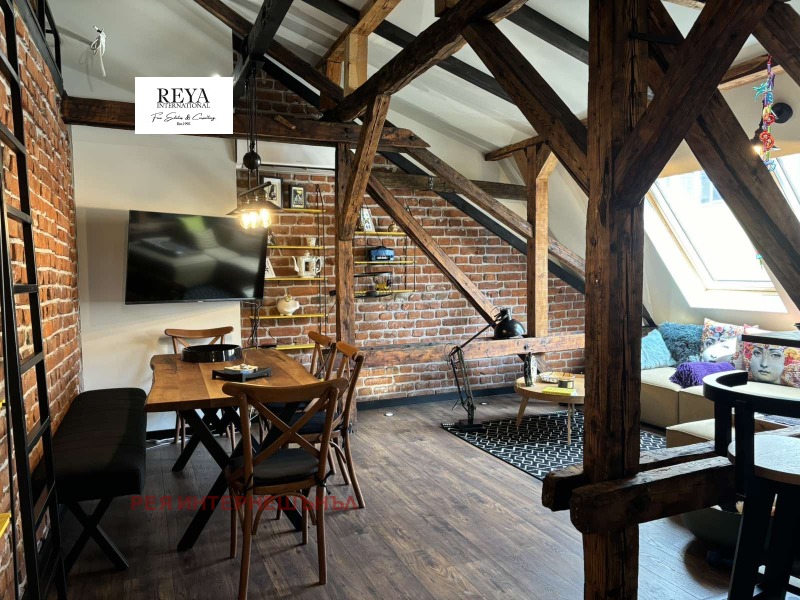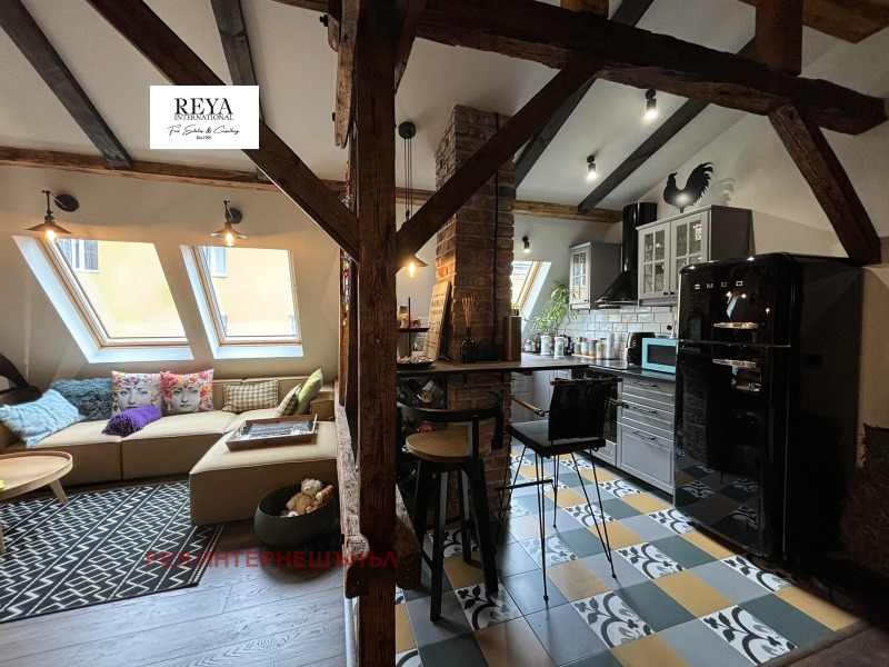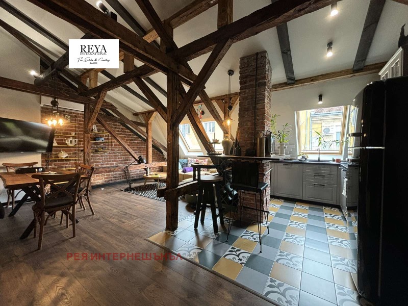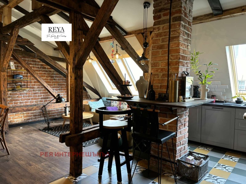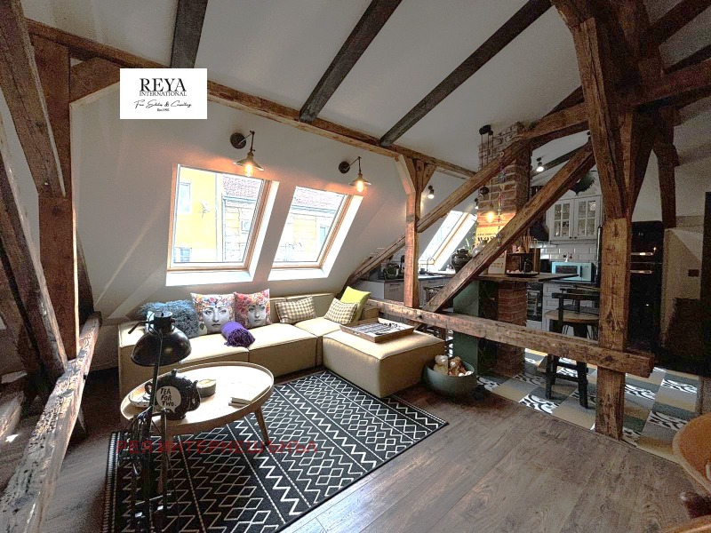 'Рея Интернешънъл' предлага за продажба артистичен апартамен на ул. Граф Игнатиев до градинката на Св. Седмочисленици . Жилището е със застроена площ от 84 кв.м., на трети етаж над магазини.
