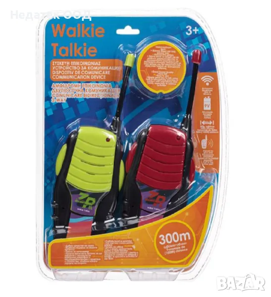 Уоки токи с бутон за включване/изключване, контрол на силата на звука, силен сигнал, гъвкава антена за по-добро предаване и приемане на сигнала, специален дизайн за лесно боравене и 300 метра комуникационно разстояние. Всяко от двете устройства работи с батерия тип 9V (не е включена).