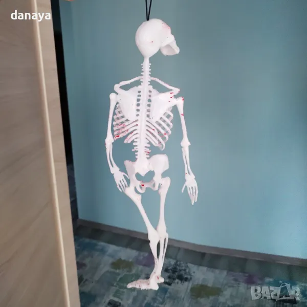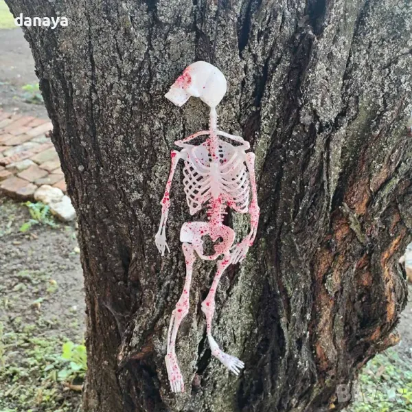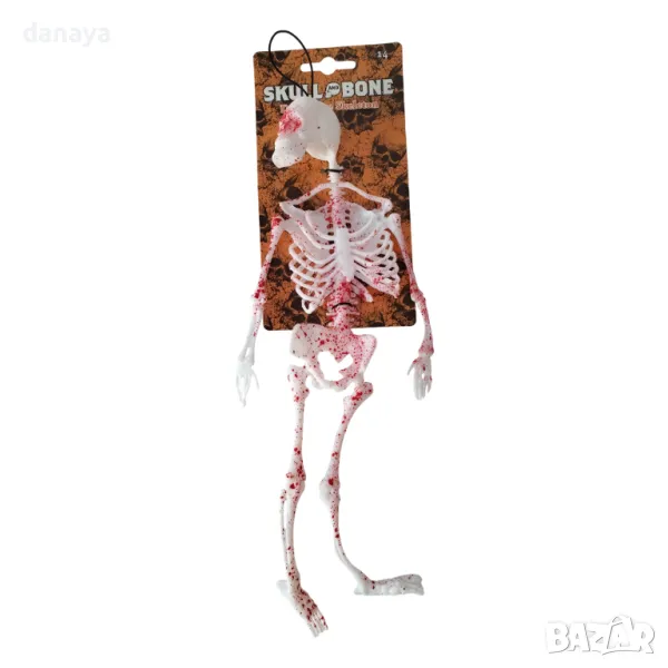 Този реалистичен гумен скелет е идеалният избор за декорация на Хелоуин, парти с хорър тема или всяко събитие, което изисква мрачен и ужасяващ акцент. Скелетът е покрит с автентични пръски кръв, които му придават ужасяващо правдоподобен вид. Оборудван с удобна връвка за лесно закачане, той може да бъде поставен навсякъде – на вратата, в стаята или навън, за да създаде страховита атмосфера. Изработен от гъвкава гума, този скелет е устойчив и лесен за съхранение след събитието.