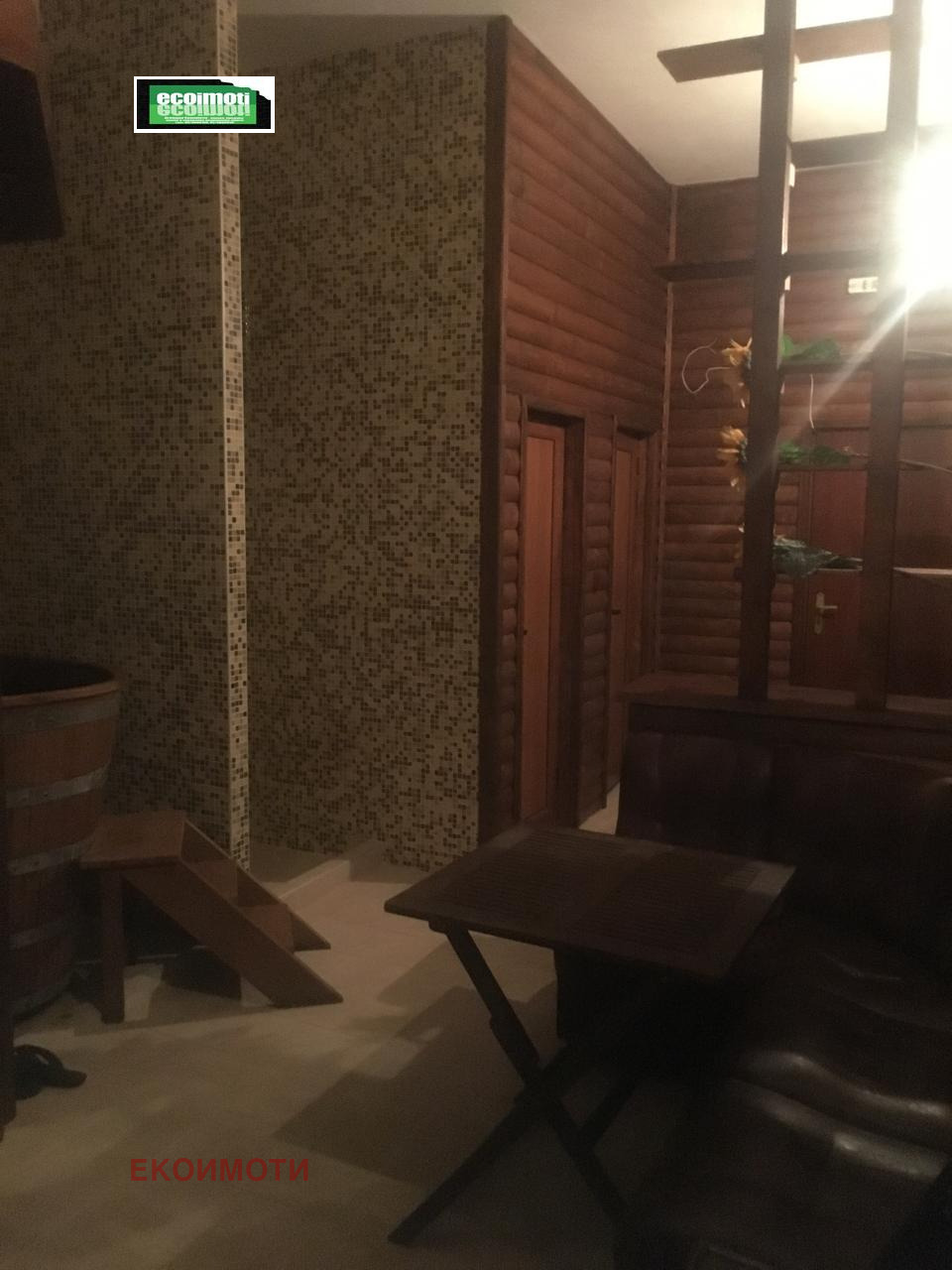7.-дървена кофа след сауна,8.-оборудвана турска баня- тавертин,9.-сауна- матерял дърво,10.- апарати за процедури - интрерфрема-2бр,магнит-2 бр.1.-корито за подготвяне на луга-неръждавейка,12.-вана за кални процедури,13.-кушетки за кални процедури - 6 бр. апарат за козметични процедури,столоже и дивани за почивка.Студия -3бр обзаведени ц мебели и кухненски боксове ,бани с тоалетни.Тока и водата са с партиди към хотела,могат да се отделят.Тел.за контакт 0899901017 Манова.