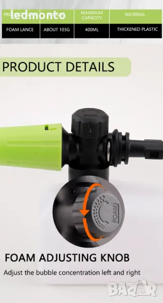 Този **пенообразувател** прави почистването на автомобила по-лесно и забавно, осигурявайки гъста пяна и ефективно отстраняване на замърсяванията. За повече информация или поръчка, свържете се с мен!