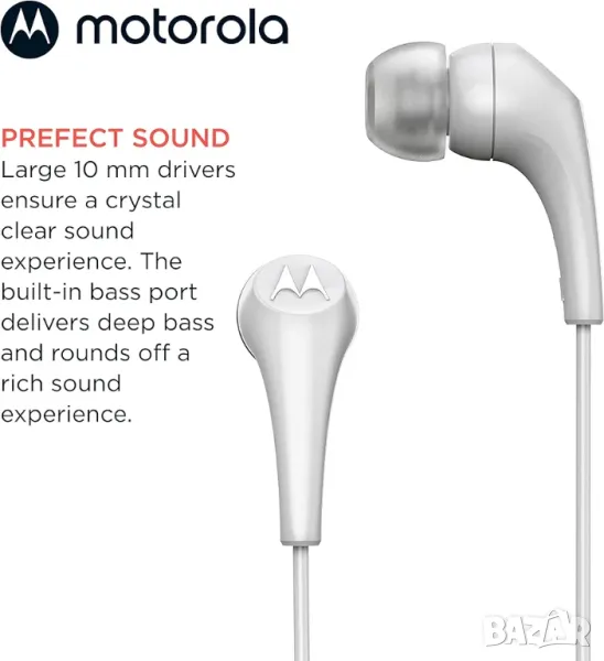 СЛУШАЛКИ С МИКРОФОН: Слушалките Motorola с кабел са проектирани с мисъл за удобство, силна акустика и преносимост. Тези слушалки за поставяне в ушите ви осигуряват прилягането, което очаквате от традиционните слушалки в дизайн, оформен за висококачествен звук.