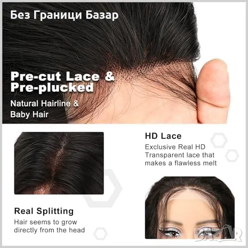 HD прозрачна дантела 4x4, с предварително изскубана бебешка коса