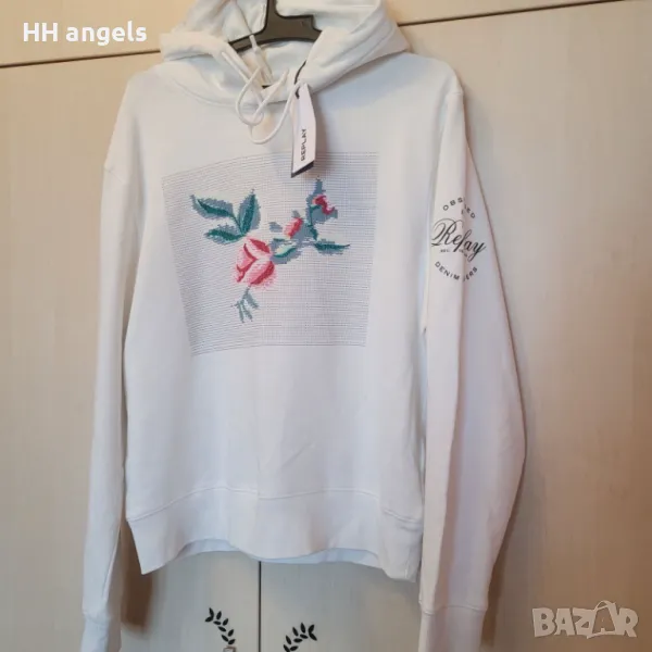 REPLAY чисто нов суитчър,органичен памук,закупен от чужбина,този модел не е наличен по сайтовете в България.М размер по етикет,но според мен спокойно става и за Л/Хл размер.Самото моделче е по-късно.Дължина 63 см и гръдна обиколка 116 см.С етикети.