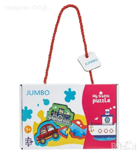 Бебешки пъзел с 16 големи части, които образуват 4 картини 16x16 см с кола, влак, самолет и лодка. Нашето високо качество и наситеност на цветовете гарантират хартия, която отразява светлината и дава изображение, живо като картина. Използвани са екологични хранителни оцветители.Сглобете частите заедно с детето или го оставете да играе сами с пъзела. Игра, която помага за развитието на наблюдателността и логическото мислене на децата, както и координацията око-ръка.