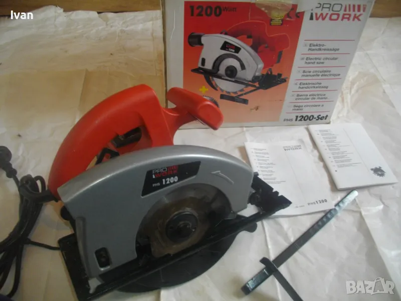 Нов немски оригинален 1 200 вата електрически ръчен циркуляр в кашон пълен комплект - ProWork PHS 1200.